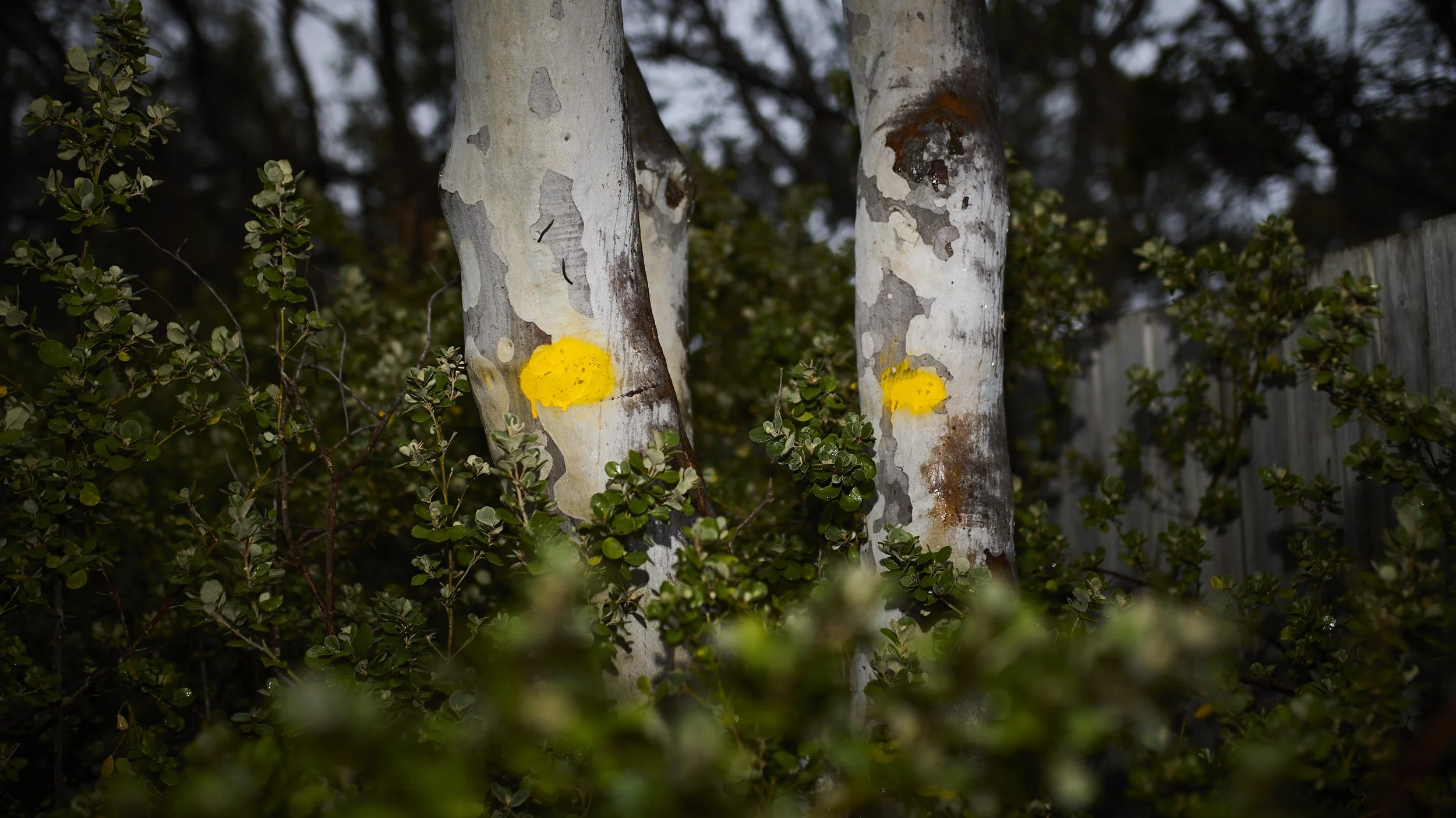 It happens every couple of years. Workers with chainsaws come and cut down the trees with the yellow paint.